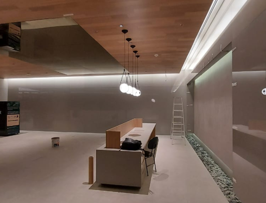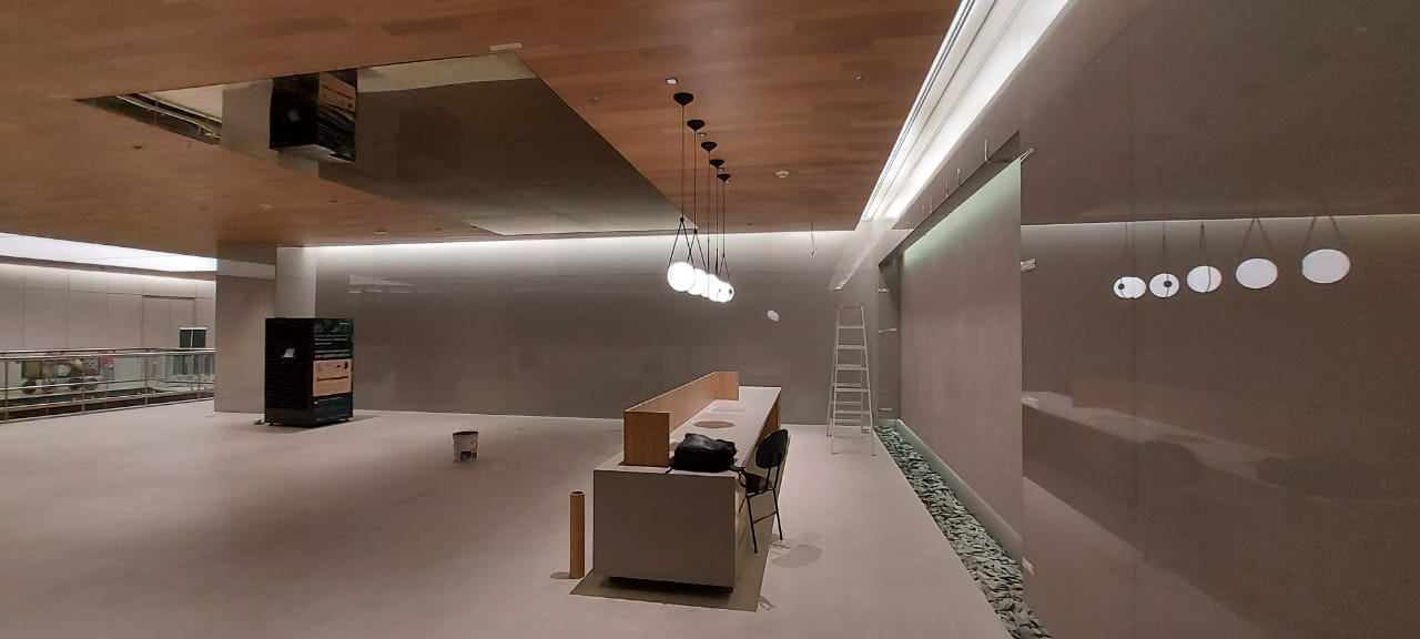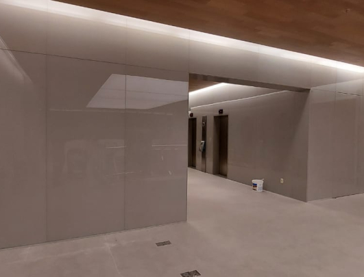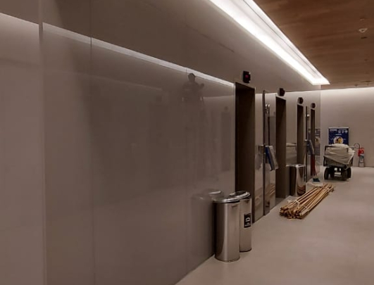 Materiais: Vidro extra clear 4mm pintado em cor personalizada (cor desenvolvida exclusivamente para o cliente)